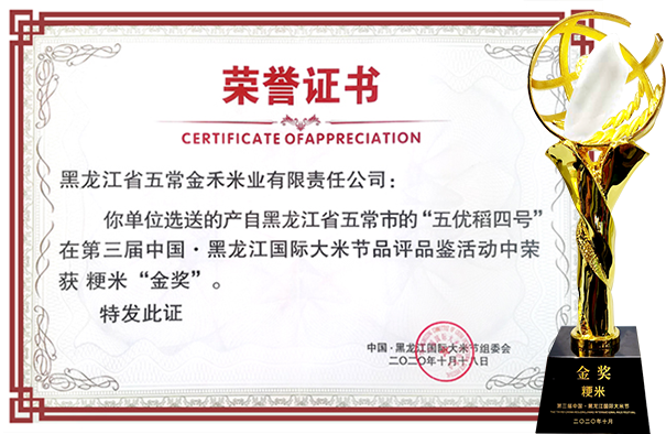 第三屆中國?黑龍江國際大米節(jié)“聖上壹品”“五優(yōu)稻四號稻”榮獲金獎;
