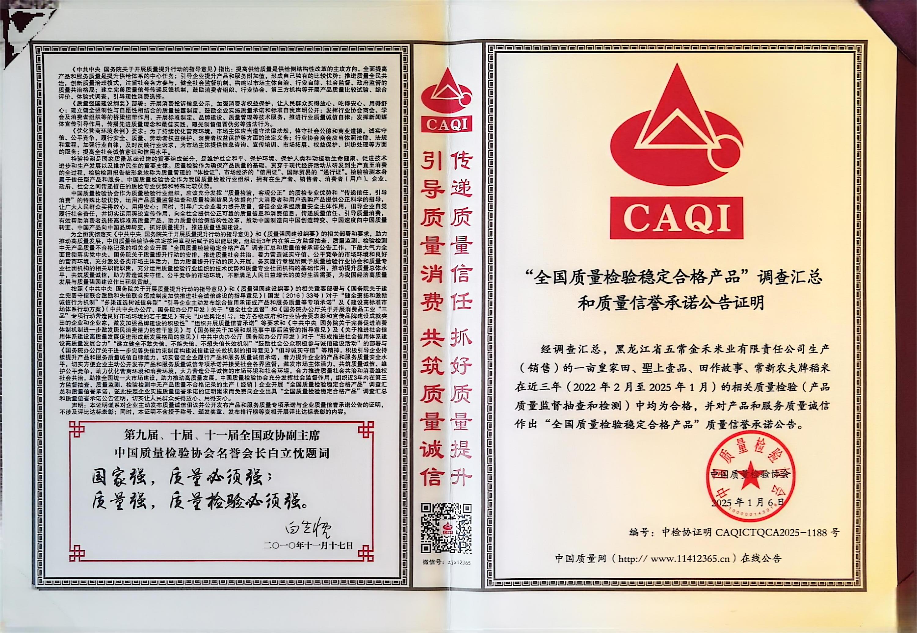 全國質(zhì)量檢驗穩(wěn)定合格產(chǎn)品,榮譽稱號;