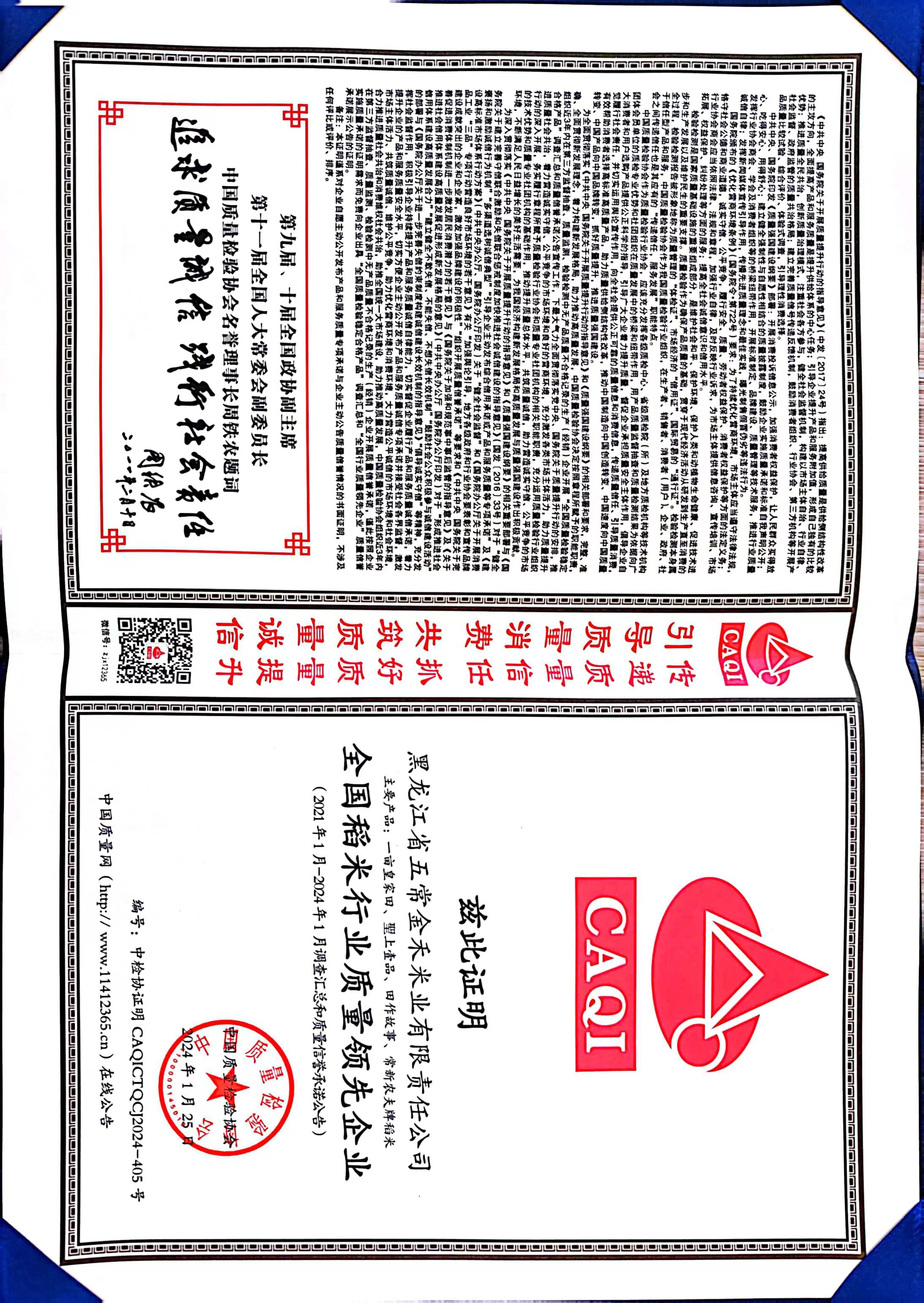 全國稻米行業(yè)質(zhì)量領(lǐng)先企業(yè)、